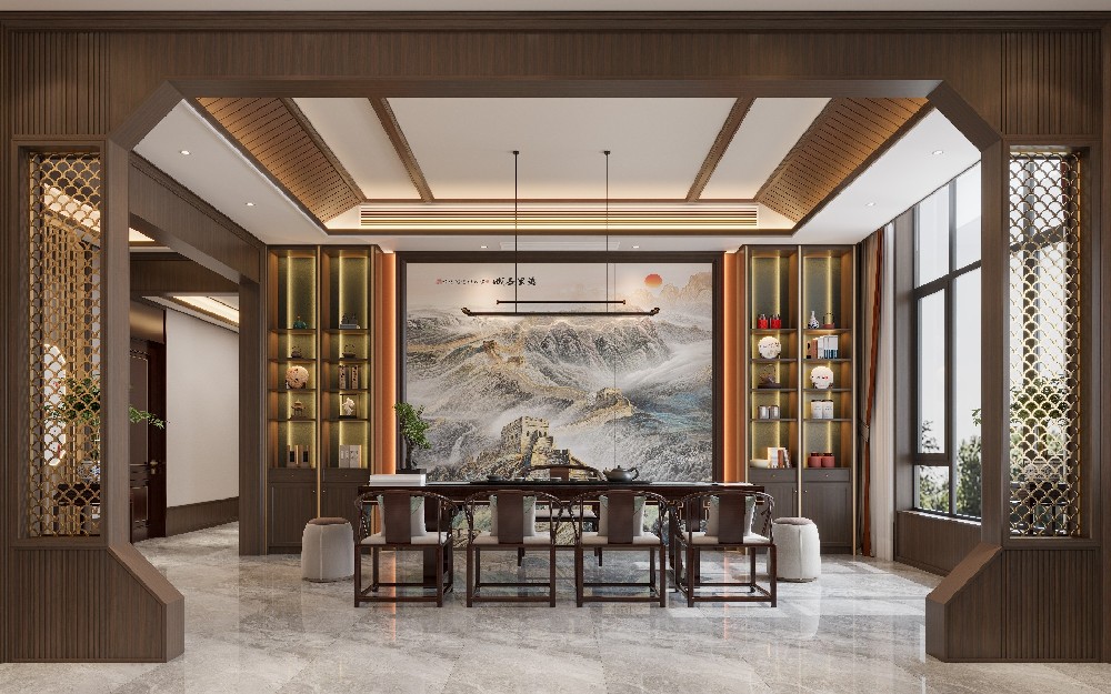 古老東方美學在新時代回潮,新中式風格將傳統中式元素,如榫卯結構、中式紋理等,以現代工藝與簡約手法重新演繹。TSCN(托斯卡納)美裝家摒棄繁復雕花,采用簡潔線條勾勒的木質紋樣墻板,搭配淡雅中式山水花鳥定制畫圖案,讓空間既有古典韻味,又不失現代簡潔大氣,完美契合當下追求文化底蘊與生活品質的審美?;剜l自建···